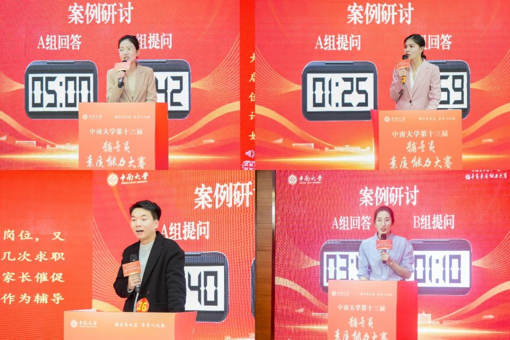 初赛阶段,全校辅导员“统考”,意在考察辅导员们应知应会的理论素养和业务知识。决赛分为团体赛和个人赛。团体赛以学院为单位,抽签产生32名参赛代表,结合一线工作经历,通过育人案例展现育人智慧与担当。初赛成绩前24名老师参加个人赛决赛。个人赛分为案例研讨与谈心谈话两大环节。