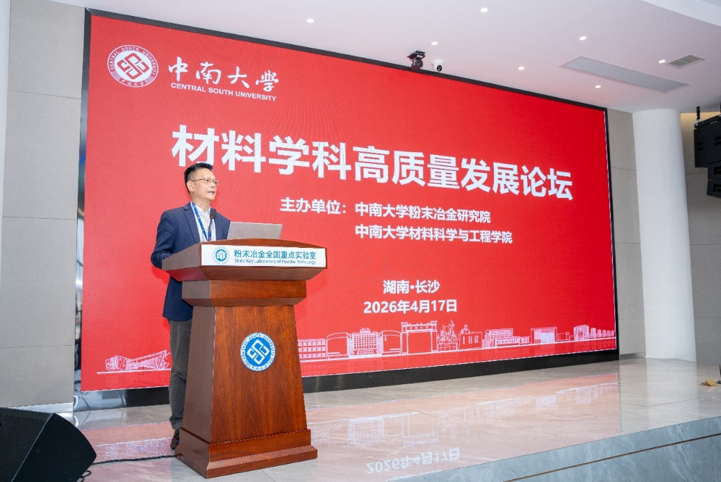 随后,粉末冶金全国重点实验室主任周科朝发言。他表示,材料学科发展必须始终锚定国家重大战略需求,坚守特色优势、勇攀科技高峰,探索构建兼具中国特色与国际领先水平的学科发展范式。他希望与会专家围绕学科规划、人才引育、产学研深度融合等核心议题深入研讨,凝聚行业合力攻克“卡脖子”关键材料技术,全面提升我国材料学科的整体实力与国际竞争力。