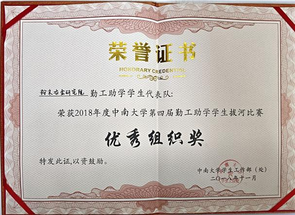 2018年度第四届勤工助学学生拔河比赛优秀组织奖