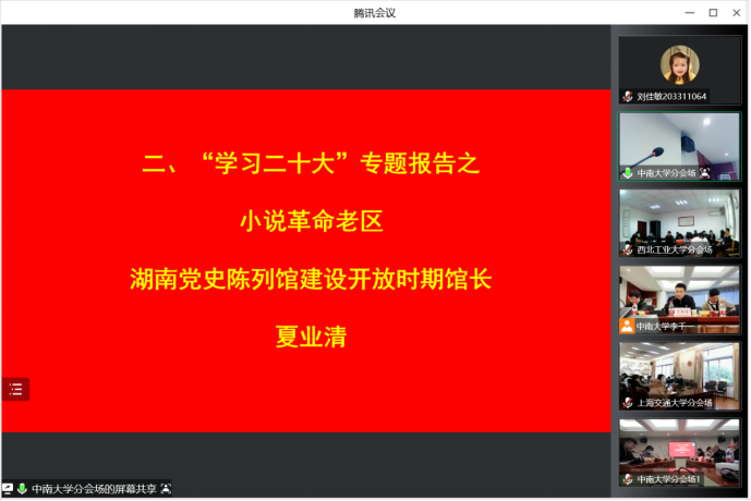 高温结构材料研究所第一党支部牵头,上海交通大学、西安交通大学、西北工业大学和华南理工大学共同参与的“踔厉奋发科研路,勠力同心奋前行”五校云共建活动通过线上线下相结合的方式顺利开展。湖南党史陈列馆建设开放时期馆长夏业清,acfan