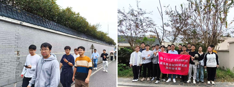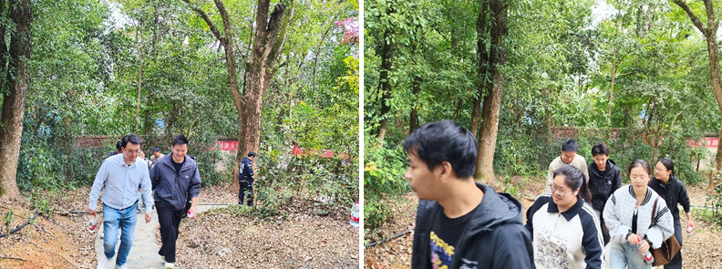 活动伊始,支部成员在岳麓山校区升旗台前集结,沿预定路线向上攀登。秋色浸染山麓,叠翠流金,师生们在攀登中切身感受着科研之路所必需的坚持与协作。文青波老师借景喻理,指出“科研如登山,既要有攻坚克难的信念,也离不开团队协作的力量”。大家一路畅谈科研进展与学科交叉,在互相扶持的温暖氛围中进一步增强了对党组织的认同与向往。