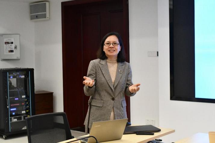 副教授伍秋美为大家分享教学经验。她指出,在教学过程中首先要了解教学要求,可以围绕课程大纲明确重点、难点制定一份教学日历,平行课程要与其余任课老师统一评分标准、规范评卷,做到评分无争议。同时,她也提到要注重教学设计,对课程脉络、重点难点的案例、课上探讨的问题、课后查阅的专题进行不断设计打磨。此外,她还鼓励各位青年学者主持和参与教改项目,提升教学方法,然后在实践中积累经验,从讲座课堂一步步向“教学相长”转变。