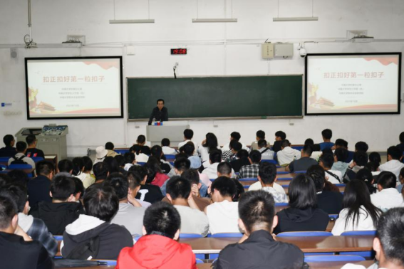 随后,黄曦老师举出了不少实例,并以此为切入点,从立大志,争有为;严律己,守底线;学榜样,勇担当三个方面,真挚诚恳地劝诫大一新生,“扣好人生的第一粒扣子”,走好人生的每一段道路。