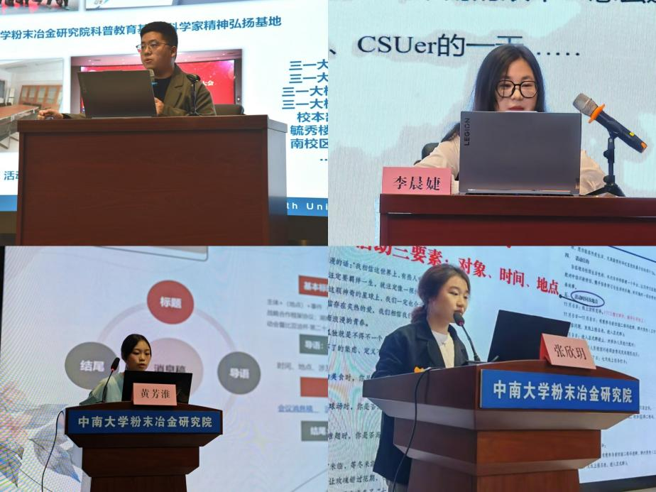 的重点学生工作及相关事务进行详细介绍,帮助全体成员快速了解研究院学生工作框架及特色。随后,李晨婕、黄芳淮、张欣玥三位同学分别以“推文文案撰写及制作技巧”“新闻撰写要点与规范表达方法”“学生干部基础事务能力”为主题上台授课,帮助各位学员对活动策划、沟通、复盘等环节有更细致的了解。