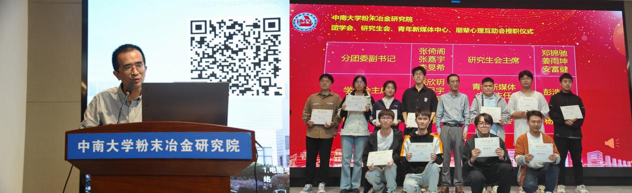 党委副书记黄曦、院分团委书记彭仕亨、博士生辅导员李卉淼、2022级本科生辅导员文天骐、2023级本科生辅导员吴娅雯、2024级本科生辅导员刘滨睿以及院团学会、研究生会、青年新媒体中心、朋辈心理互助会的150余位学生干部共同参与本次会议。本次活动分为授职仪式和培训讲座两个环节。