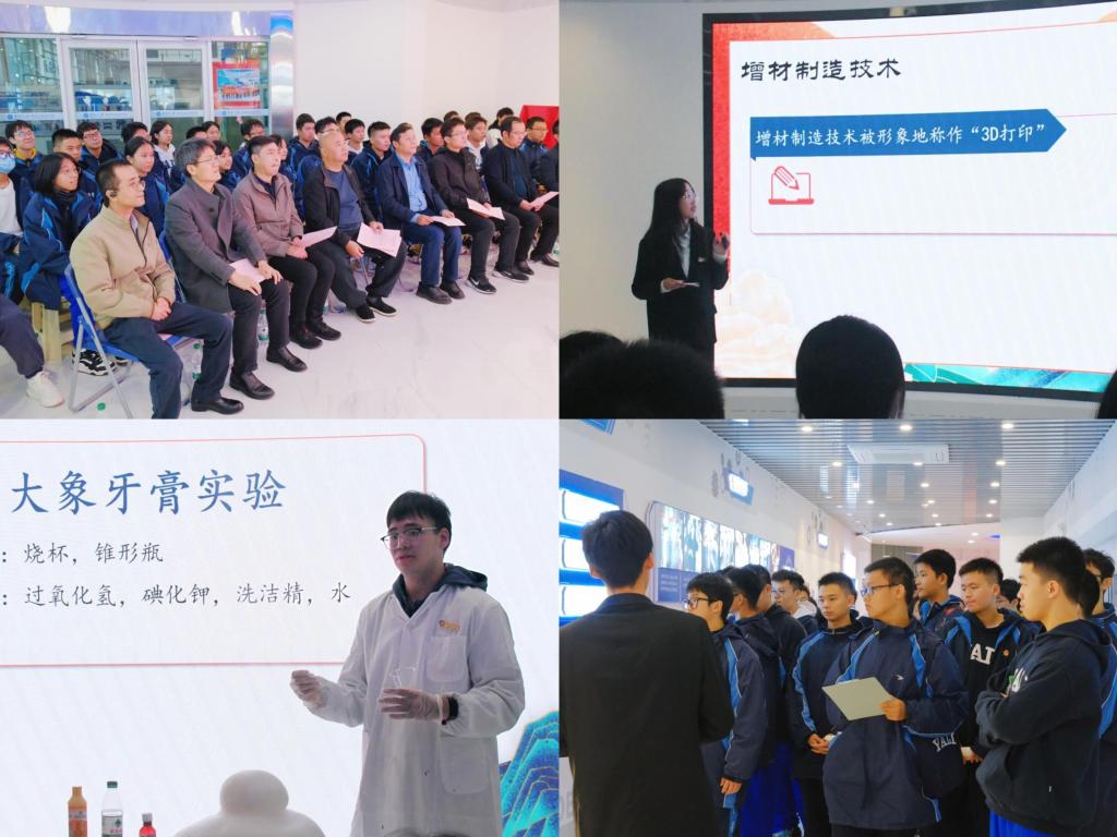 此次活动还邀请了长沙市雅礼洋湖实验中学的30位同学前来参观学习,以实验和动画的方式展示了粉末冶金的前世今生,并带领学生重走习总书记的考察足迹,身临其境地回顾着我国粉末冶金事业的光辉历程。
