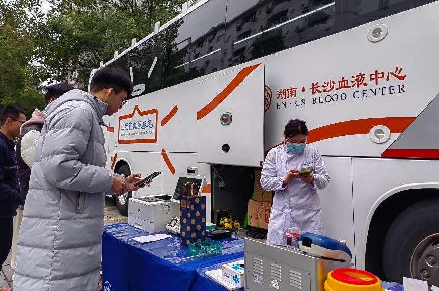 青年志愿者协会实践部联合长沙市血液中心,在升华公寓二食堂前坪举办了无偿献血公益活动。acfan