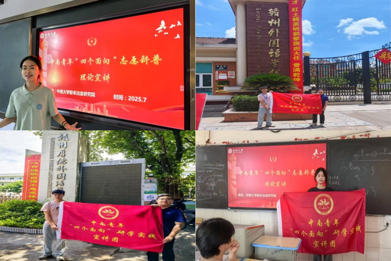 2025年6月25日至28日,中南青年“四个面向”研学实践宣讲团组建三支分队,深入江西省景德镇、乐平、赣州、宜春等地多所中学,开展为期四天的科学家精神主题宣讲活动。此次活动以弘扬科学家精神、阐释“四个面向”战略导向,旨在引领青年学子树立科研报国志向,将个人成长融入国家发展需求。