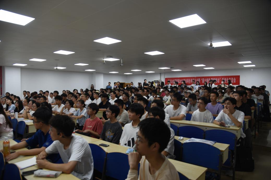 2023级优秀学生代表毕鑫向新生进行经验分享。他不仅详细解析了大一课程,还介绍了学习资源的获取渠道与实用高效的学习方法。同时,鼓励同学们积极参与学生工作与各类竞赛活动,以此拓宽视野、锻炼能力,促进自身全面发展。