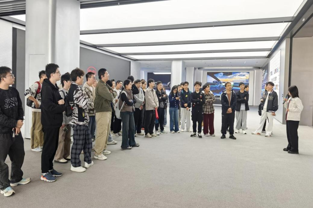 团队首先抵达比亚迪基地。在企业发展展示区,同学们系统回顾了比亚迪从1994年到2024年的辉煌历程;技术成果展区内,“累计研发投入超2200亿元、全球专利超4.8万项”的硬核数据,让“技术为王、创新为本”的企业理念变得可触可感;最后,在产品体验区,通过对四大系列车型及核心技术的零距离接触,拉近了同学们与产业间的距离,构建起对比亚迪创新战略与技术布局的整体认知。