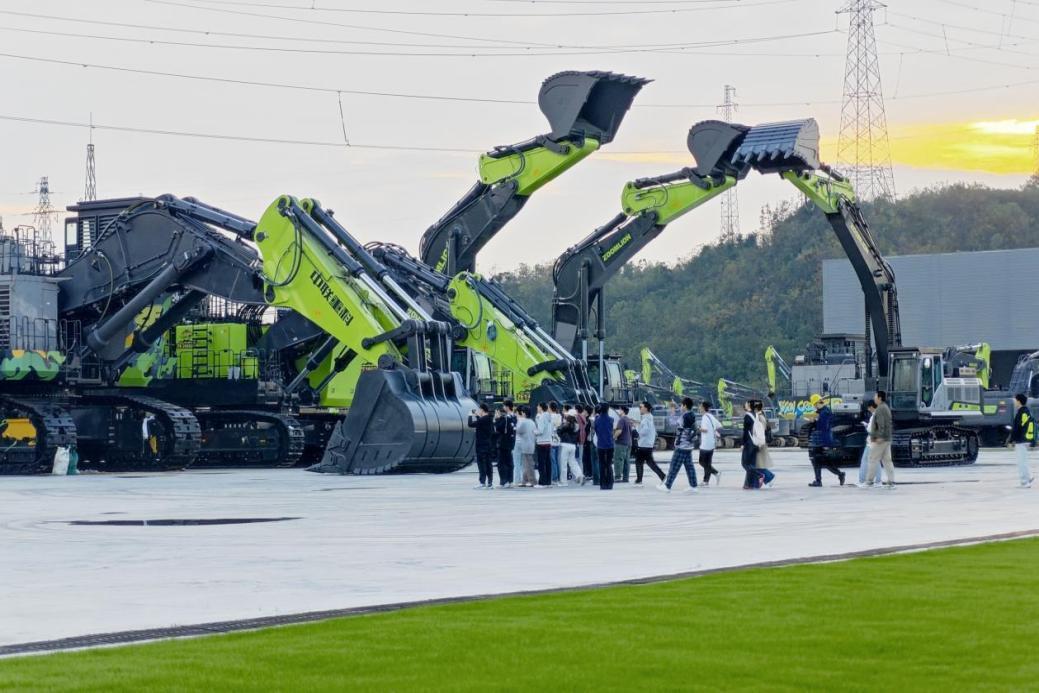 随后,团队来到中联重科智慧产业城土方机械园区。智能生产车间内,AGV机器人自如穿梭,75%的部件实现机器人辅助装配,彰显了数字化制造的高效与精准;设备演示现场,滑移装载机随乐“起舞”,挖掘机机械臂精准完成高难度动作,让同学们在惊叹中切身感受智能制造的硬核实力。