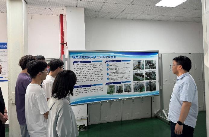 最后,与会同志一同前往长沙矿冶研究院车间,在长沙矿冶研究院科研团队的带领下,实地了解锂电池生产流程和研究所最新科研成果。