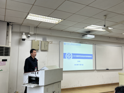 2023级研究生实验室安全环保专题教育在科教南楼601教室举行。本次专题教育旨在提高新入学硕士、博士研究生实验室安全环保知识水平,树立安全环保意识,增强应急处置能力,为后续的科研工作提供安全保障。