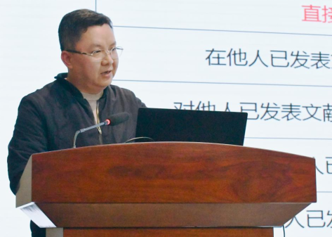 接着,韦伟峰副院长根据相关规范条例,对抄袭剽窃、一稿多投、故意重复发表论文、篡改研究数据、违反署名规范等科研活动中的失信行为,以及各类人员的科研失信行为的界定方法、惩处方式进行了逐一介绍和分析,以此勉励在座的老师和同学们引以为戒,恪守学术道德。