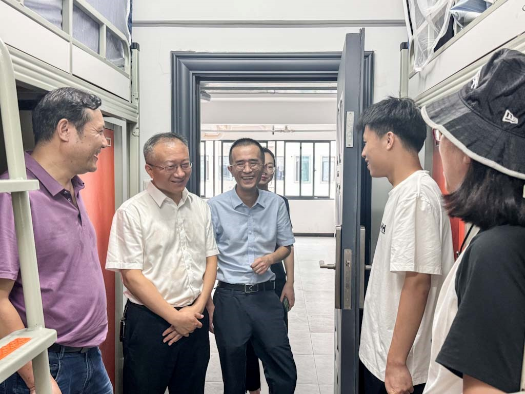 会议结束后,党委书记王德志、院长张斗、党委副书记黄曦走访了南校区新生寝室并对研究院迎新点的志愿者们进行慰问。走访过程中王德志书记和张斗院长进入升华学生公寓宿舍内部进行参观,并同前来报到的新生进行了亲切的问候和交流,询问他们此次迎新过程是否存在不足之处。最后,王书记和张院长来到研究院设置的迎新点对在岗的志愿者们进行慰问与表扬,并叮嘱志愿者们迎新时做好防晒补水工作,注意自身身体健康与安全。