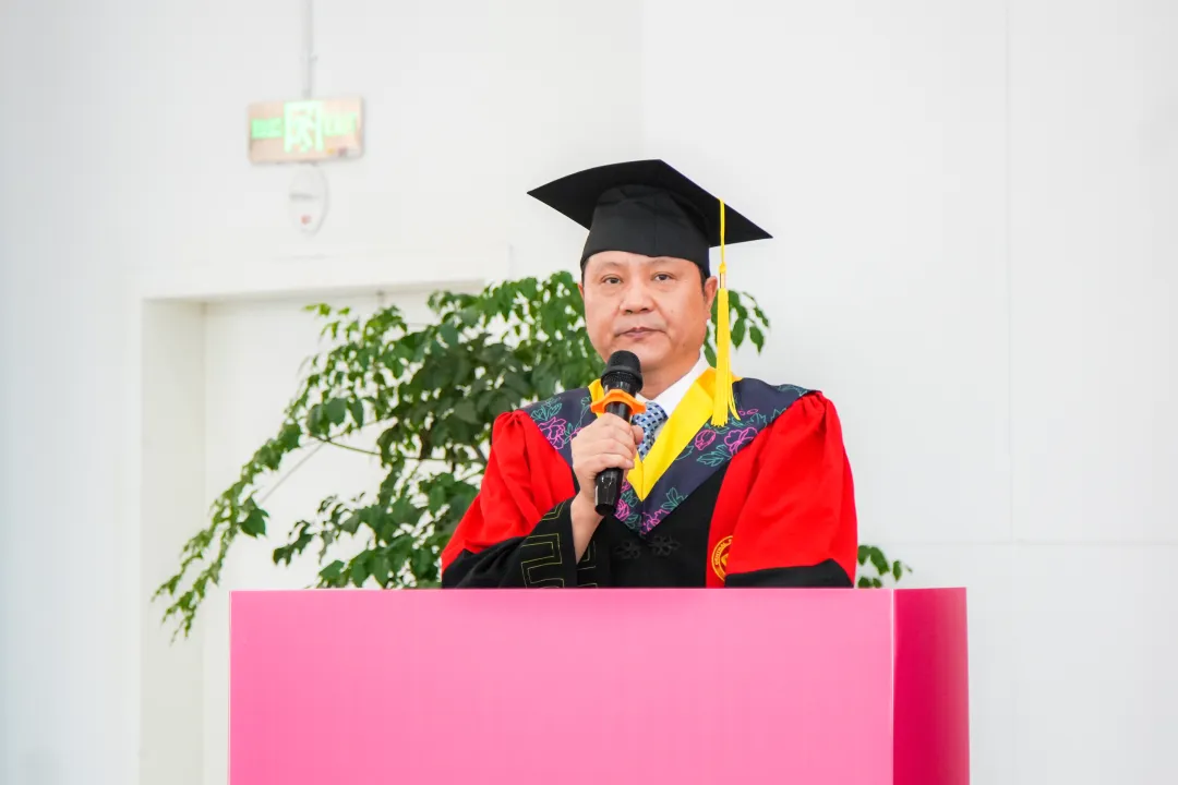 典礼接近尾声,张斗院长为毕业生致辞。他对毕业学生表达了诚挚的祝贺与祝福,骄傲地讲述了学生入学以来acfan