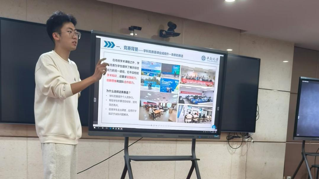2024级本科生辅导员刘滨睿老师,为新生们讲解大学竞赛的相关政策和注意事项,旨在帮助新生们更好地融入大学,激发创新精神,提高参加竞赛积极性。