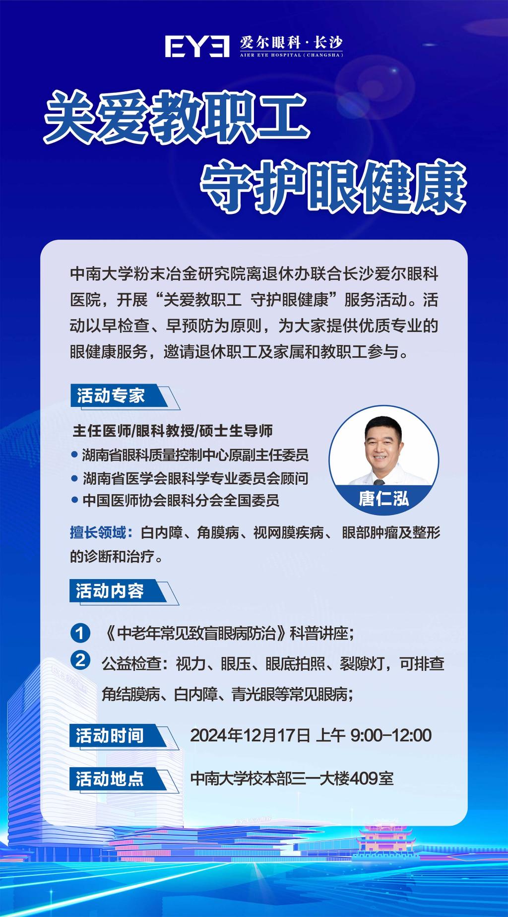 离退休办联合长沙爱尔眼科医院,在三一大楼409会议室开展“关爱教职工 守护眼健康”服务活动。本次活动旨在提高我院教职工、退休职工及其家属的眼健康意识,以早检查、早预防为原则,为教职工、退休职工及其家属提供优质专业的眼健康服务。