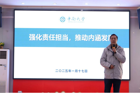 会上,张斗院长以“凝心聚力谋发展,踔厉奋发启新程”为主题,对2024年研究院工作进行了全面总结,并对2025年重点工作进行部署。张斗院长在报告中指出,2024年在全院师生的共同努力下,研究院在学科建设、师资队伍、科学研究、人才培养等方面均取得了卓越成效:学科ESI全球排名首次进入世界前万分之一,新增国家级领军人才2人,以第一单位在《Science》上发表论文,粉末冶金全国重点实验室顺利通过优化重组等,开创了各项事业蓬勃发展的新局面。同时,张斗院长深入分析了当前面临的机遇与挑战,明确了2025年的工作目标和重点任务,并引用习近平总书记的新年贺词“梦虽遥,追则能达;愿虽艰,持则可圆”作总结,鼓励全体教职工再接再厉,奋力拼搏,为研究院高质量发展作出新的更大贡献。