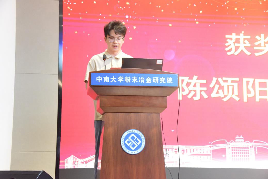获奖学生代表发言环节,陈颂阳同学上台发言,向设奖企业与研究院致以最诚挚的感谢。他表示对此次获奖感到非常荣幸,将继续以蓬勃的热情对待今后的学习生活,将个人理想融入到国家、社会需求当中去,担当起新时代青年的责任与使命。