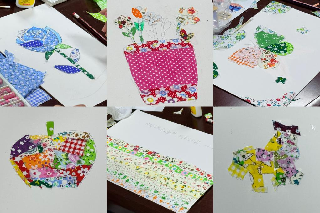 环保手工课上,在志愿者的指导下,孩子们将收集的旧布料、废纸片,通过剪裁、拼贴,赋予它们新的生命。一幅幅充满想象力的“春天”主题拼贴画,不仅展现了孩子们眼中的盎然春意,也传递着勤俭节约的雷锋精神。