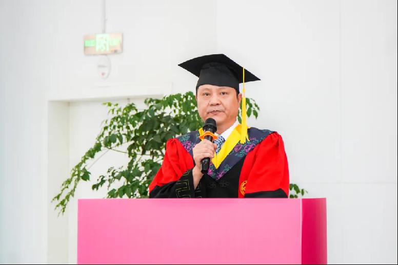 典礼接近尾声,张斗院长为毕业生致辞。他对毕业学生表达了诚挚的祝贺与祝福,骄傲地讲述了学生入学以来acfan