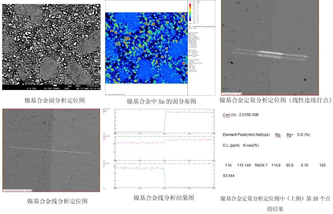 可实现材料微区的化学组成定性和定量分析、材料微区的化学组成线分析和面分析、材料微区的高分辨二次电子像、背散射电子像观察等。配置四道谱仪,其中两道日本电子100mm罗兰圆谱仪是全聚焦型晶体,两道日本电子140mm罗兰圆谱仪是半聚焦型晶体,同时配置牛津电制冷能谱仪。