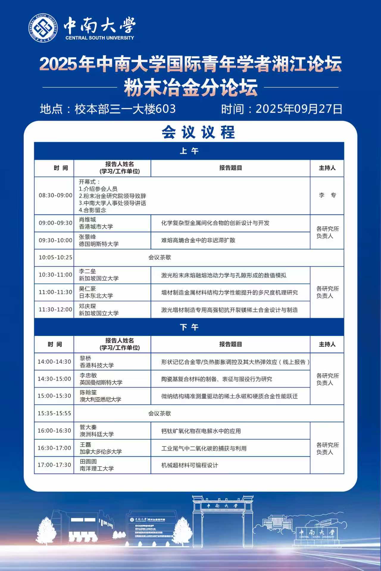 主讲人:李默 教授,佐治亚理工大学时间:2025年7月28日 10:00地点:三一大楼506报告摘要:Different from crystalline materials, nanoscale disordered materials, including metallicglassy alloys and oxide glasses, possess unique and often advantageous properties, such asstructural isotropy, high catalytic properties, soft magnetic properties, high strength, and wear andcorrosion resistance. Ideally, t...