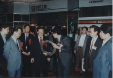 年4月30日,中共中央总书记、国家主席、中央军委主席江泽民在“第二届全国工业企业技术进步成就展览会” 上参观视察我所研制的刹车材料。
